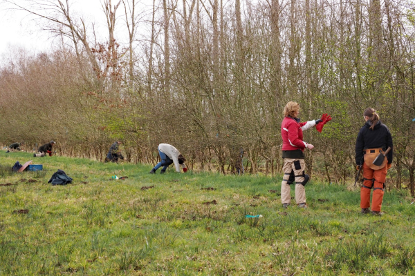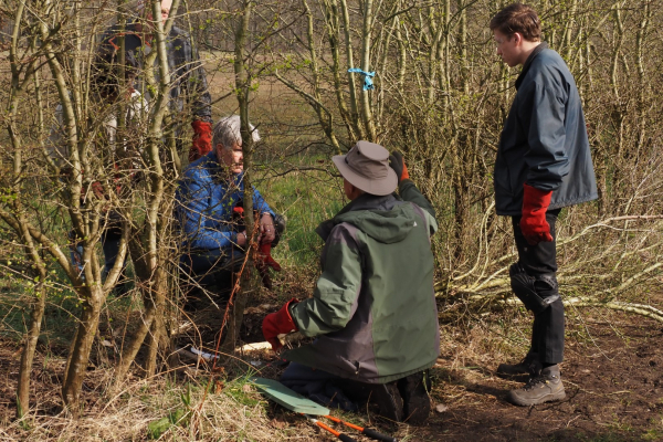 Kristianne legt uit: “Stammen van 4 cm of dikker worden onderaan schuin ingekapt zodat er een dusdanig dun stuk hout met bast overblijft dat buigzaam genoeg is om de struik of boom te laten ombuigen. Hierdoor blijft de struik van sapstroom voorzien en dus leven. Als dit met alle struiken op een rij gebeurt ontstaat een levend hekwerk. De hergroei groeit weer recht naar boven en vlecht zich door de liggende struiken heen. een mooie samenwerking tussen mens en de natuur”. Deze methode heet feitelijk heggenleggen.