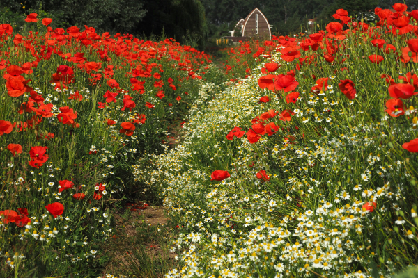 Klaprozen en echte kamille