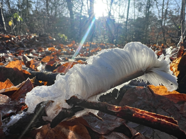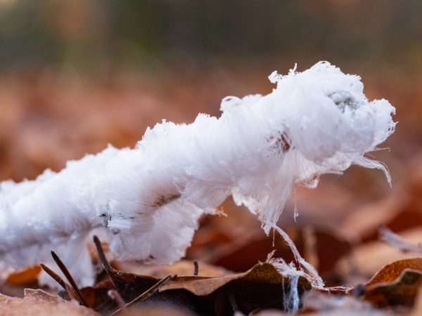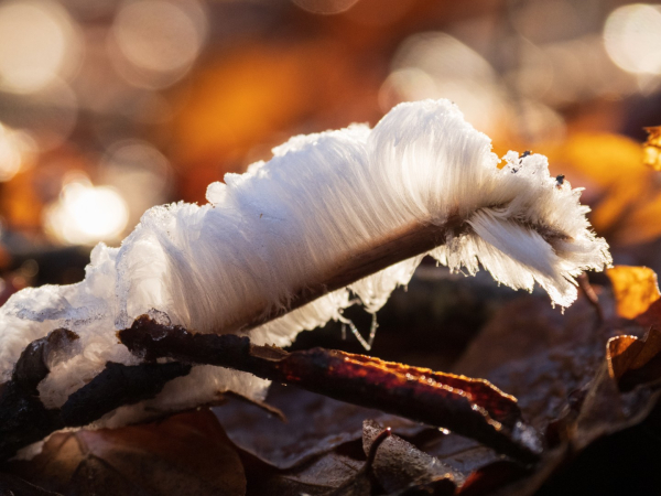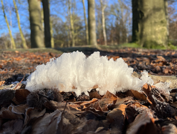 Een tip: als er rijp op de velden te zien is, kun je in het bos ook vaak ijshaar waarnemen.
