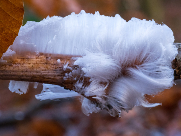 Wel goed om je heen kijken, het meeste ijshaar zie je op de grond op dode takken.