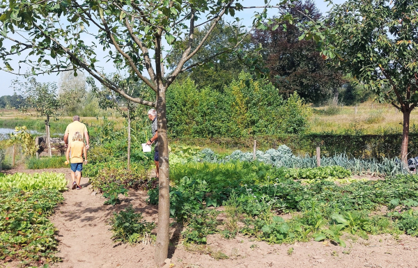 De omgeving van de boerderij is als typisch Twents boerenerf ingericht, compleet met hoogstamfruitboomgaard en moestuin. Gerard Lubbers en Harry Sulmann zorgen ervoor dat de moestuin er prachtig bijstaat; de felgekleurde stengels van de snijbiet stralen je tegemoet. De opbrengst wordt verdeeld onder de actieve vrijwilligers. Bij een boerderij horen ook de nodige vogelnestkasten. De steenuilenkast heeft al twee jaar jongen opgeleverd, maar de kerkuilen moeten hun nestkast nog ontdekken. Op het erf bevinden zich ook een flink bijenhotel en een egelkast.