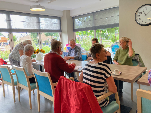 Al pratend verlaten we de Knapenveldsweg en slaan af naar een mooi, slingerend bospaadje. Het is nu zo smal dat we achter elkaar moeten lopen. Voor me raapt iemand bijna terloops een rondslingerende, lege chipszak op. Wie van natuur geniet gaat er vanzelf voorzichtig mee om. Snel daarna zijn we terug bij ons startpunt, het wijkcentrum De Noaber. Samen bewegen, rondkijken in de natuur en nieuwe mensen leren kennen, het is een gouden combinatie. Binnen wacht de koffie.