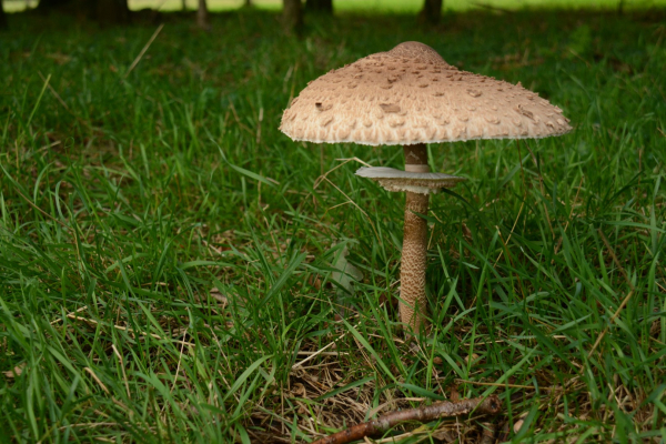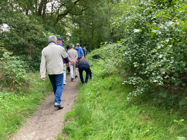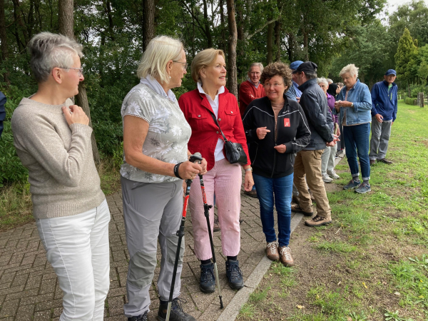 Negentien opgewekte wandelaars hebben zich deze dinsdagochtend gemeld. “We wandelen maximaal vier kilometer en we doen het rustig aan”. Ik heb dus alle tijd om heerlijk om me heen te kijken. Het is mooi hier aan de rand van Raalte. We lopen over een klinkerweggetje met aan beide kanten prachtige, hoge bomen. Even later stopt Ineke bij een weiland en wijst op grote, lichtbruine paddenstoelen op een hoge steel. “De grote parasolzwam”, vertelt ze aan de groep, “een eetbare paddenstoel, je bakt hem ongeveer zoals een schnitzel”. Het leidt tot vrolijke reacties om me heen. Zo te horen gaat niet iedereen het thuis snel uitproberen.