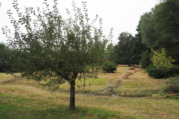In twee uur is de klus geklaard. Maar zo is het niet altijd gegaan. Vroeger werd het maaisel op ladders gelegd, en naar de rand afgevoerd, maar zo grapten de vrijwilligers ‘nu we wat ouder worden, hebben we het onszelf wat gemakkelijker gemaakt.