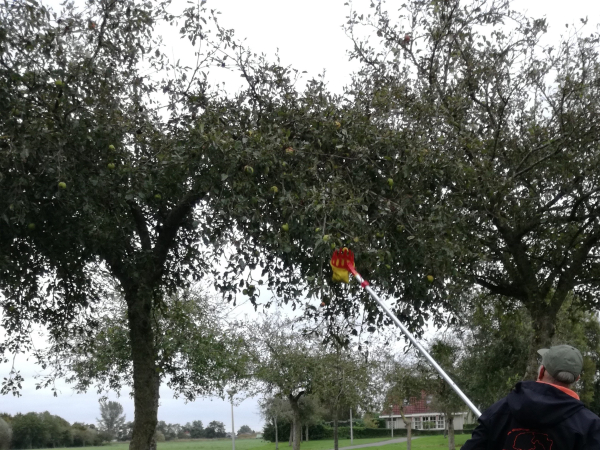Voor Jeroen ligt de basis en de kracht van de Hoogstambrigade bij samenwerking. “Klaasjan Pol en ik fungeren als het gezicht van de Hoogstambrigade Zwartewaterland. Als het gaat om het concretiseren van onze plannen, hebben we contact met o.a. de gemeente, Landschap Overijssel en de Veldschuur. We zoeken daarnaast de verbinding met zorginstellingen met dagbesteding, zoals Philadelphia in Genemuiden en De Linde hier in Hasselt: wij leveren de appels, zij maken de appeltaart. En we gaan met leerlingen van de basisscholen op pad, zodat ook zij kunnen kennismaken met de boomgaarden. Natuurlijk lukt dat alleen met hulp van onze vrijwilligers en betrokken buurtbewoners. Het is echt een plezier om dit gezamenlijk op te pakken. Om met elkaar te werken aan wat er al is en dat weer meer waarde te geven.”