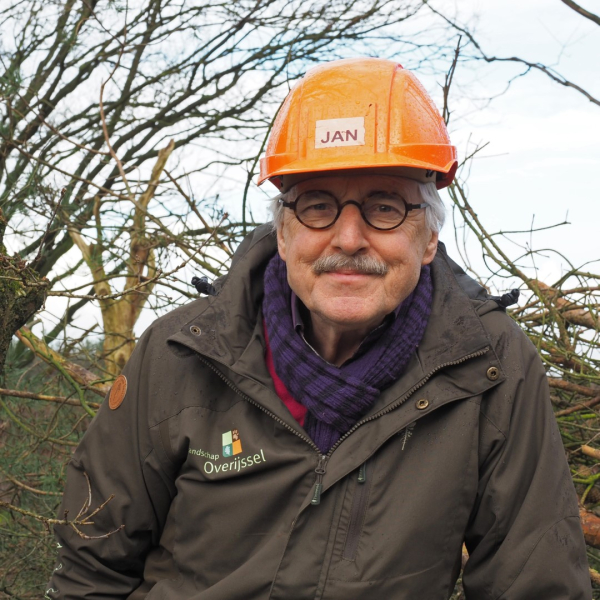 Jan is 72 jaar en geeft al 8 jaar als vrijwilliger leiding aan de VB. Hij is begonnen direct na zijn pensioen, Jan was werkzaam als directeur van een basisschool. "Ik wilde mijn hart volgen om daadwerkelijk iets te gaan doen voor de natuur." Jan komt uit een boswachtersfamilie. "Fascinerend beroep" zegt hij. Gebeld met Landschap Overijssel, hij kon meteen de volgende dag komen voor een gesprek. Er bleek een vacature te zijn als coördinator VB en daarvoor werd hij gevraagd. Op maat gesneden vond Jan. "Een grote diversiteit aan opdrachten in de natuur, werkzaam door de hele provincie en werken met gemotiveerde collega's." Op mijn vraag om naast gemotiveerdheid nog eens 3 woorden te noemen die toepasselijk zijn voor de VB noemt Jan, gemoedelijkheid, vakmanschap en kameraadschappelijk. Het is een fijne groep om mee te werken