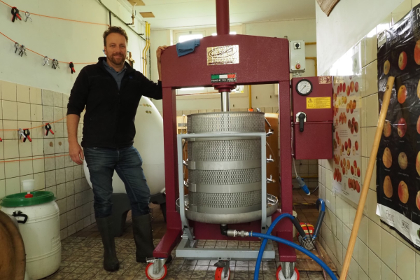 Hoeveel kilo's? Dat wisselt zegt Marin. Dit jaar verwachten we 15 ton hoogstamfruit te verwerken. Zelf hebben ze ook een tweetal boomgaarden met meer dan 100 unieke soorten. Maar die zijn nog te jong om substantieel te produceren.