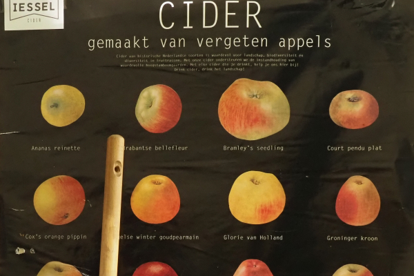 Binnen hangt een poster met allemaal oude appelrassen erop. In de ciderij worden alleen maar oude fruitrassen, appels en peren gebruikt. Marin vertelt "Van de vele honderden fruitrassen die in Nederland nog bestaan gebruiken wij er tientallen. Daar maken we verschillende ciders van, o.a. appelcider, perencider, wild vergiste cider en op eiken gerijpte cider."
