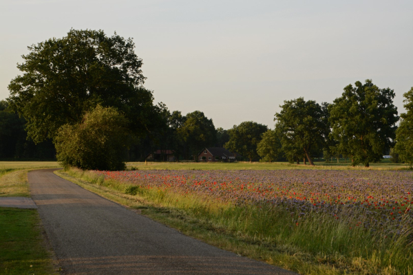 De kruidenakker is prachtig te zien vanaf de weg. Het ligt tussen de knooppunten 67 en 68 nabij Bornerbroek. Vanuit het startpunt Bornerbroek van Routenetwerken Twente loopt ook de gele wandelroute van ongeveer 5 kilometer langs deze kruidenakker.