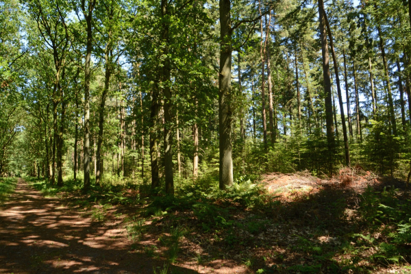De eerste set foto’s geven een beeld van een bosperceel waarbij aan het pad loofbomen staan en daarachter dennen. Deze dennen werden na het maken van de foto gekapt. De tweede foto laat hetzelfde pad drie jaar later zien. De loofbomen staan nog aan het pad en erachter zie je de nieuwe loofbomen opkomen.