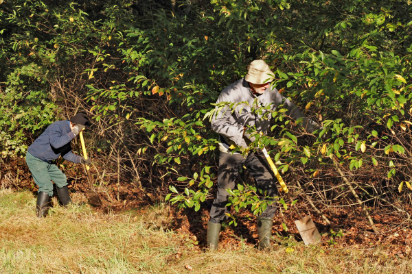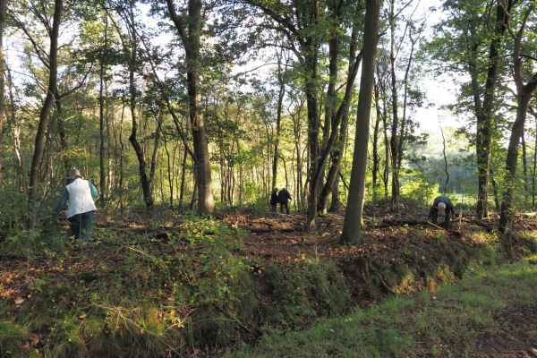 De groep gaat al vrij snel hard aan het werk. Vandaag gaan ze aan de slag om de vogelkers te verwijderen langs één van de zandpaden in dit natuurgebied. Naast vogelkers bestrijden ze ook de Japanse duizendknoop en de reuze springbalsemien. Maar ook allerlei andere werkzaamheden zijn mogelijk. Incidenteel is de donderdaggroep ook actief in de natuurgebieden ’t Holthuis en de Lonnekerberg met op dat moment noodzakelijke natuurwerkzaamheden.