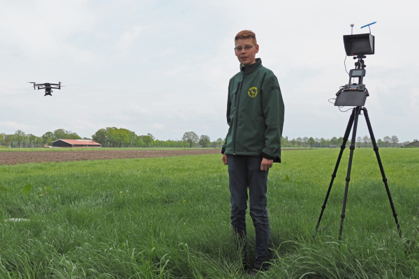 De 14-jarige Sven Oude Heuvel vliegt al jaren als hobby met drones. Hij heeft met succes het examen van de drone opleiding behaald maar krijgt het diploma pas als hij 16 is. Om die reden is er altijd een tweede gediplomeerde piloot bij. Sinds dit jaar gaat hij bijna elke ochtend mee om nesten op te sporen. Dat betekent op het moment waarop ik dit schrijf: om 4 uur opstaan, inpakken en wegwezen want er kan alleen gewerkt worden in de vroege ochtenduren als de zon nog niet alles opgewarmd heeft.
