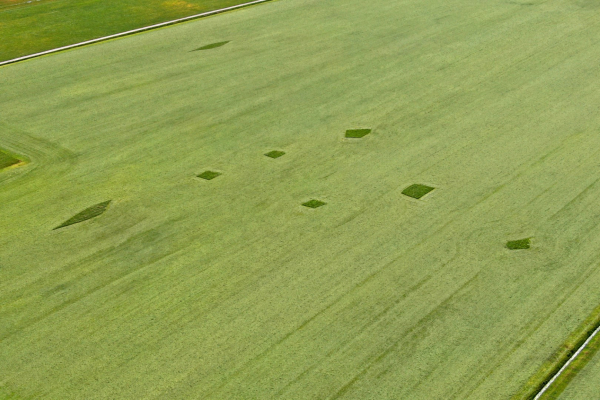 Als verslaggever mocht ik bij wijze van grote uitzondering mee het veld in om een eerder opgespoord nest te markeren. Ik keek mee op het scherm: “zie je die rijstkorrel daar? Dat is een haas. En zie je dat hele kleine lichte puntje? Dat is een nest, waarvan weten we nog niet”. Tjé zeg dat is bijna niet te zien. We gaan het veld in om te zoeken. De drone blijft als een baken op pakweg 25 meter boven het nest hangen. Als we een eind het veld in zijn moeten we stoppen want de batterij van de drone is al leeg. De drone wordt teruggehaald, batterij wisselen en verder maar weer. Op de plek (coördinaat) aangekomen wordt er heel voorzichtig gespeurd. De vogel is dan al gevlogen. Ook al staan we er pal op dan is het nog echt zoeken. Wow. Een nest met 4 Grutto eieren. Met de bamboestokken wordt het vervolgens gemarkeerd. Hennie Schröder legt uit “Dit hebben we nu even speciaal voor jou zo gedaan bij dit ene nest maar de software maakt een nog efficiëntere manier van werken van de middagploeg mogelijk waardoor er nog minder verstoring optreedt”.