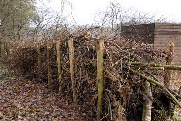 Van de gesnoeide takken maakt de groep takkenrillen aan de randen van het weiland. Goed voor de biodiversiteit en voor allerlei kleine diertjes zoals vogels en egels. Een mooie opdracht in het kader van de groene stage.