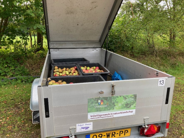Wie een paar fruitbomen heeft staan, kent het ‘probleem’. Wat doe je met al je appels en peren als de vriezer vol zit met appelmoes en de hele familie geen appeltaart meer kan zien? De oplossing: maak er lekker sap van! Dit jaar stond de mobiele fruitpers van de familie Huiskamp daarom weer op twee bezoekerscentra van Landschap Overijssel; het Dal van de Mosbeek in Mander en De Wheem in Oud-Avereest. Vrijwilligers van beide centra staken de handen uit de mouwen om het allemaal zo goed mogelijk te laten verlopen.