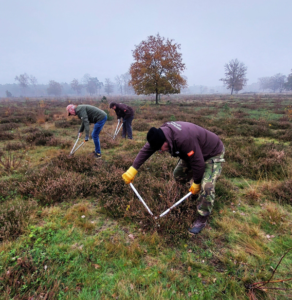 Een koude, mistige zaterdagochtend in november. Twee mannen met stevige schoenen in jacks met het opschrift ‘Vrijwilliger Staatsbosbeheer’ staan bij de ingang van camping Noetselerberg in Nijverdal. Het is duidelijk: hier moet ik zijn om kennis te maken met de vrijwilligers die de heide bij de Noetselerberg vrijzetten.